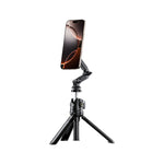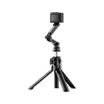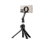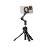 Thanks to its magnetic design, it does not interfere with the phone's side buttons and allows for easy switching between landscape and portrait modes. The built-in strong magnets support up to 4.85 lb / 2.2 kg, providing a secure attachment to your phone, so you can fully immerse yourself in your creation without worrying about phone safety. The silicone pad around the magnetic mount enhances its anti-slip performance and helps prevent scratches on your phone. The product includes two detachable extension rods connected by three locking knobs, each allowing flexible tilt angle adjustments of at least 180°. By removing any one of the knobs, the product can be converted into an action camera mount, compatible with a variety of action camera brands.